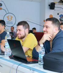 Присъствената форма на обучение има много предимства - реален контакт с лектори и колеги, с които да споделяте ценен опит! В СофтуУни има страхотно community от готини хора, които винаги са насреща, ако имаш нужда от помощ!