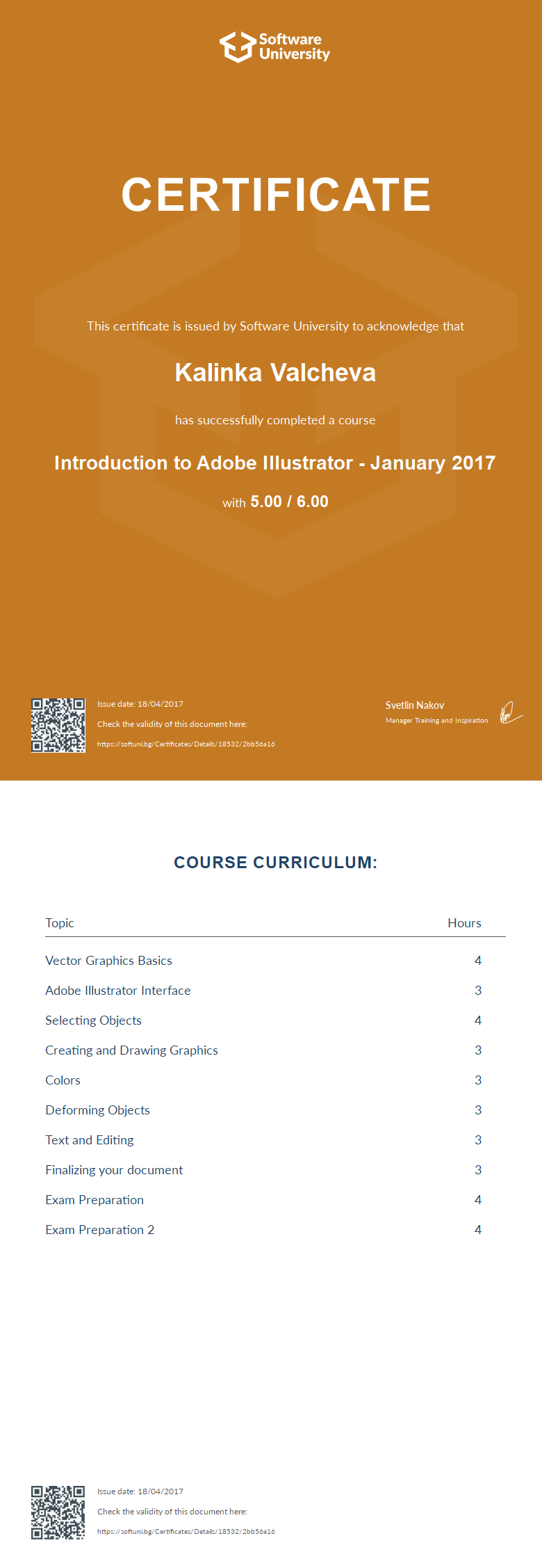 This certificate is issued by Software University to acknowledge that